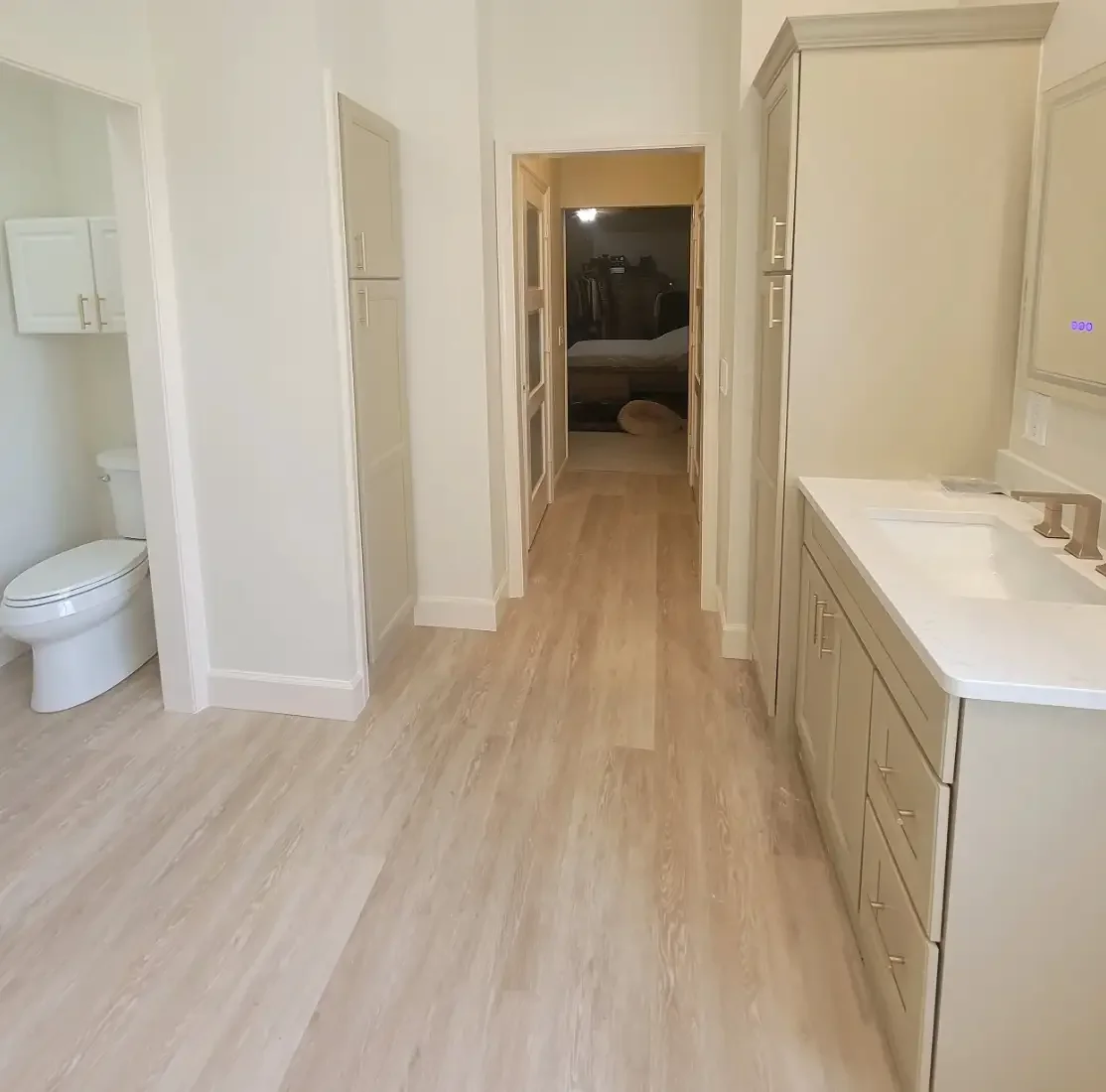 In the bathrooms, new Matte Black lighting and plumbing fixtures were installed, and the master bath vanity was the only other item changed.